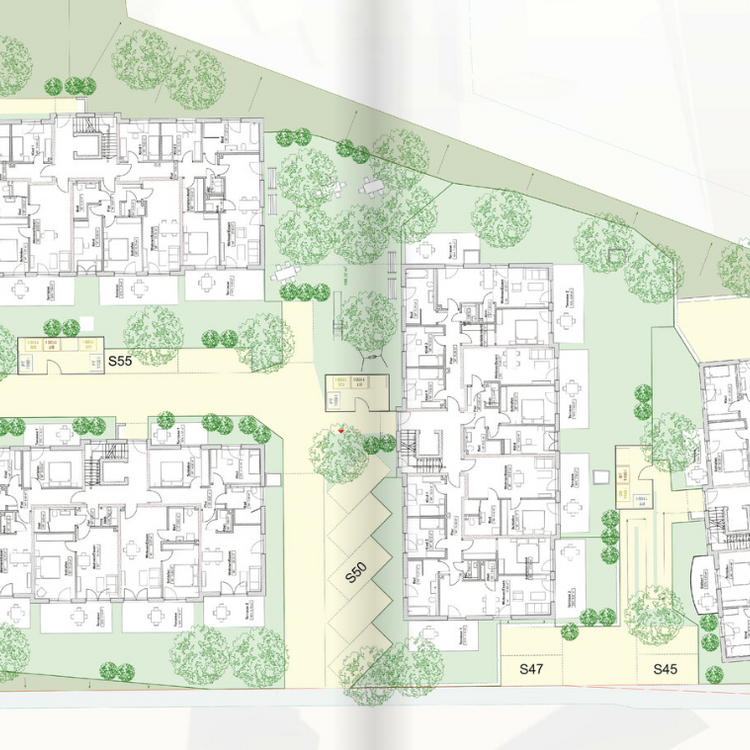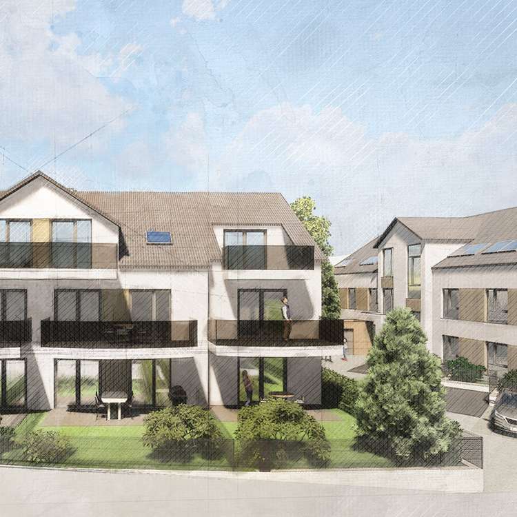 Im schönen Stätzling entsteht auf ca. 4.270 m² Grundstücksfläche eine moderne Mehrfamilienhausanlage. Vier locker geschnittene Baukörper mit Satteldach präsentieren insgesamt 45 Wohneinheiten. Die Tiefgarage verbindet die Häuser unterirdisch miteinander und wurde geschickt geplant, um eine einfache statische Ausführung zu gewährleisten. Über barrierefreie Treppenhäuser und Aufzüge gelangen Sie bequem von der Tiefgarage in alle Geschosse. Erweiterte Bewegungsflächen und großzügige Sanitärräume sorgen dafür, dass die meisten Wohnungen den Anforderungen der Barrierefreiheit nach BayBO entsprechen.