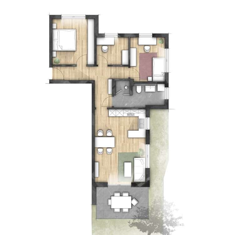 • Große Wohn-Essbereiche bieten Platz für großzügige individuelle Küchen